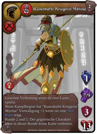 : Aktion. Sammler. Einzigartig. Attacke +1 pro Charakter, dessen Verteidigung über ihrem Basiswert liegt.